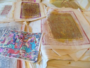 照片006用棉紙將竹紙古文物包起來